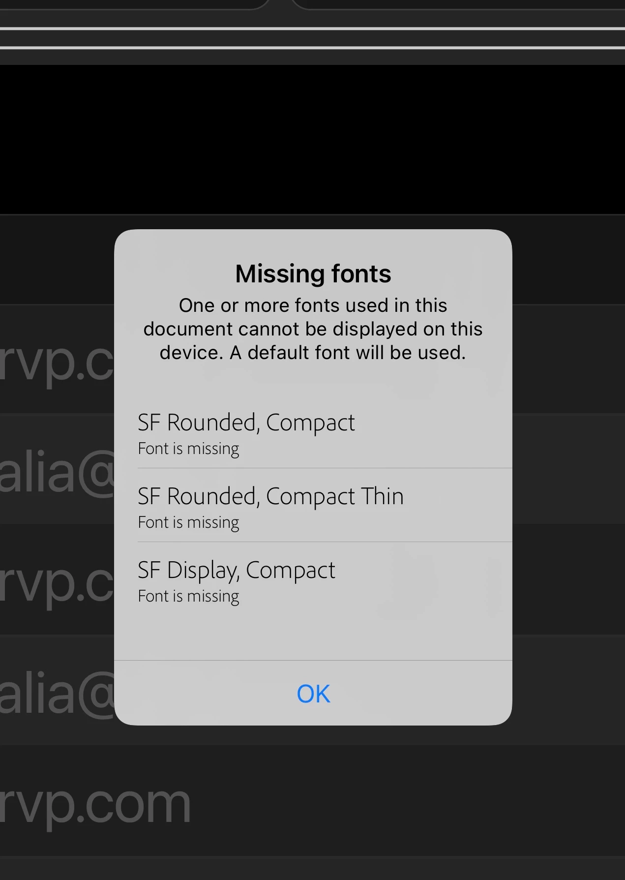 XD app for iOS | Missing fonts: SF Rounded, Compact - SF Rounded, Compact Thin - SF Display, Compact