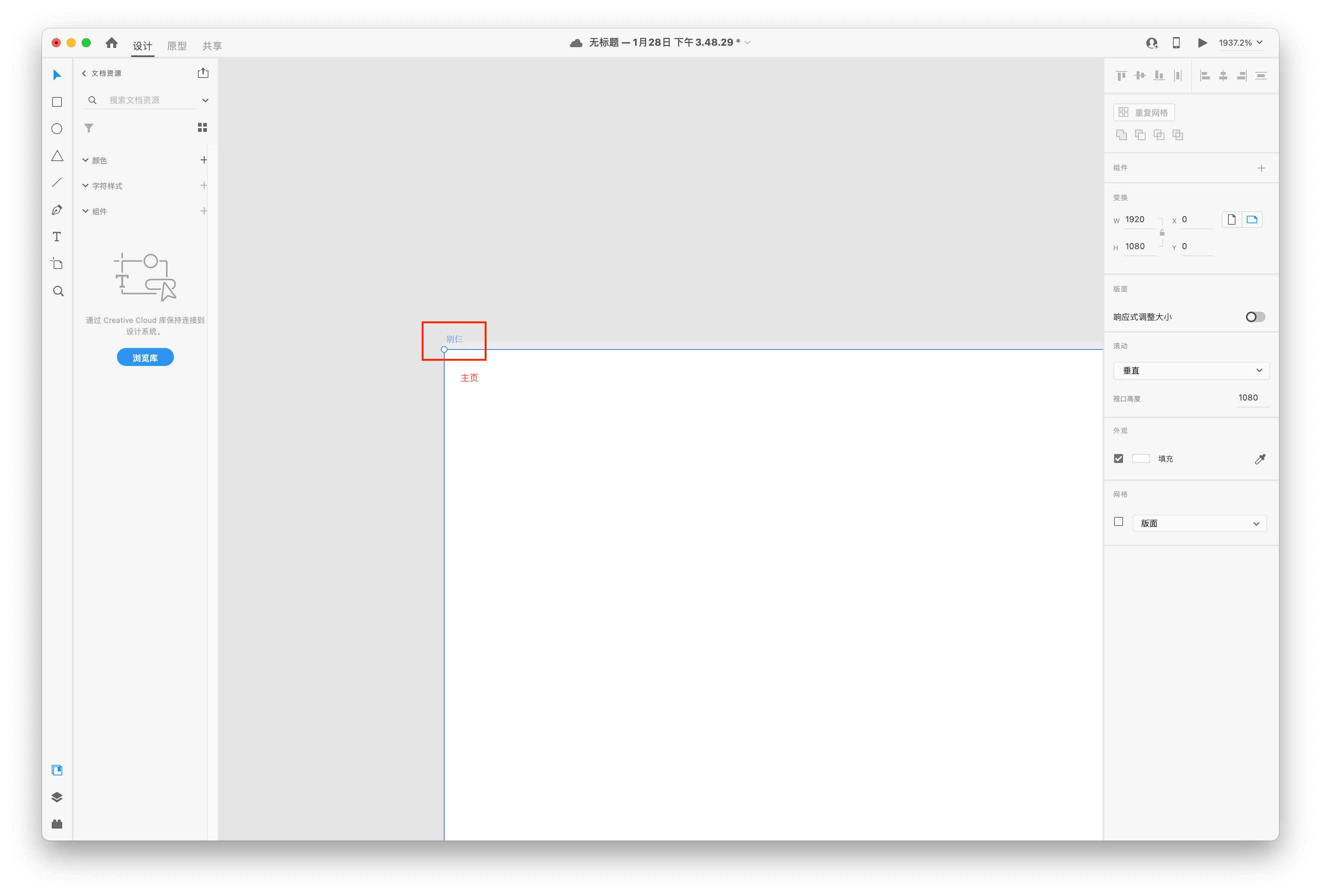 打开旧文档,或者编辑新文档的时候,修改画板名称为中文完成后,字符显示异常。