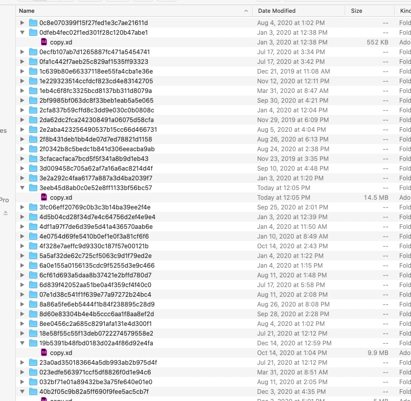 Recently while trying to clear up some space on my MacBook Pro I discovered that in the Application Support folder in the Library XD has been (or appears to have been) creating duplicate files of anything I work on. A new file/folder is created each time I do a save on an open file. The folders are random numbers and all the files are simply named copy.xd.