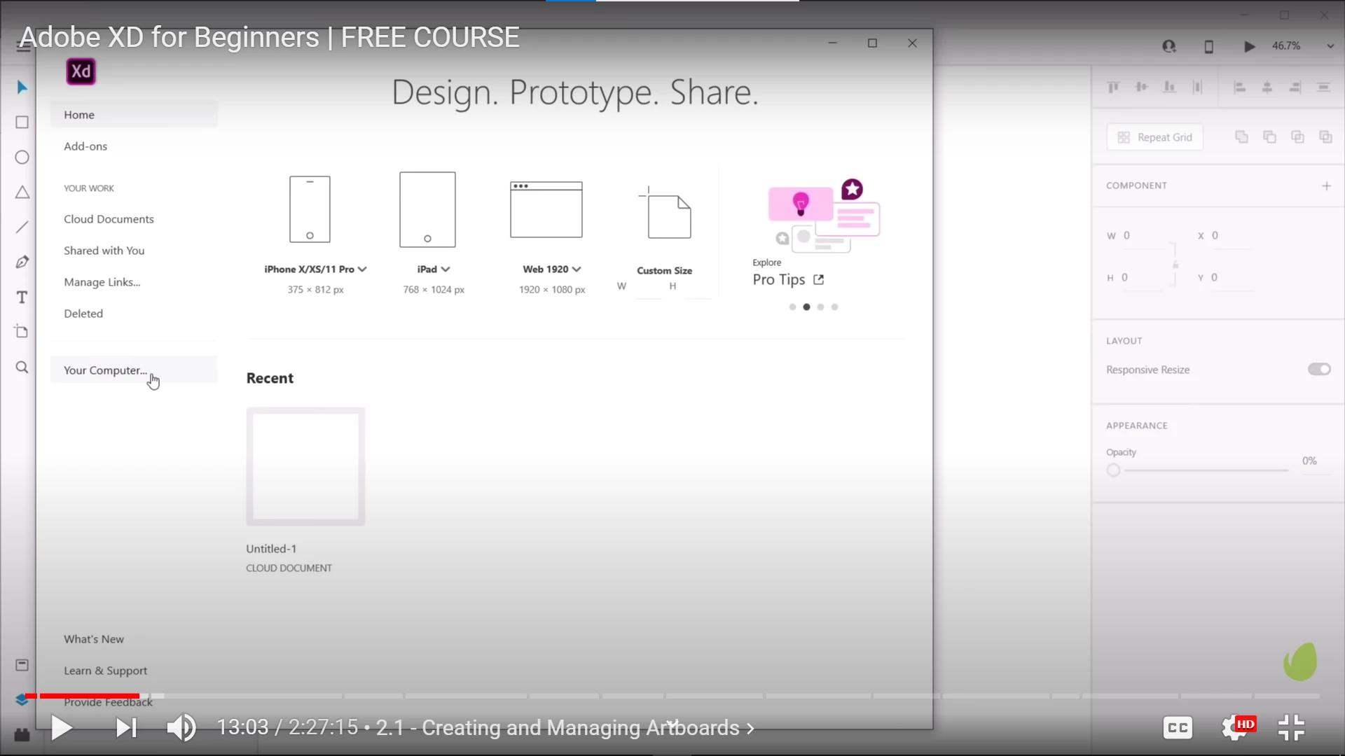 I have just started learning XD and when I was following the tutorial, I found that my XD version doesn't have the "Your Computer" Option available........