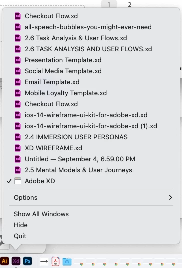 My XD document disappeared after I restarted my computer. I can't locate the doc anywhere, the frustrating part is that I was very conscious about saving as I was working on my project. I have no idea where it is, any tips of what to do would be helpful, i've been working on this for weeks. The weird part is that if I click onth XD app icon on my dock , I can see it there, but it doens't open when I click on it. I tried to log out and log back in and that didn't help, some adobe dude suggested this: