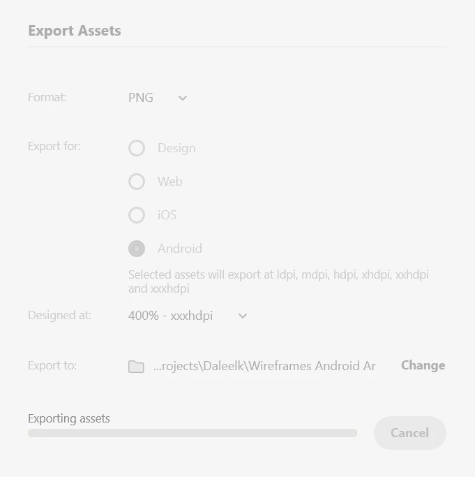 - if you do use it and you notice the options view (the part below the folders where you can select for which platform to export - iOS, Android etc) becoming unresponsive (unable to select a different platform), click again on New Folder and then Cancel. This seems to reset the UI and you should be able to complete the export from that point on without any issue. If, while in the frozen state, you exit the folder picker (either by hitting Export or by hitting Cancel) without clicking on New Folder again, you will have to kill Xd to get the UI back to its normal behavior.