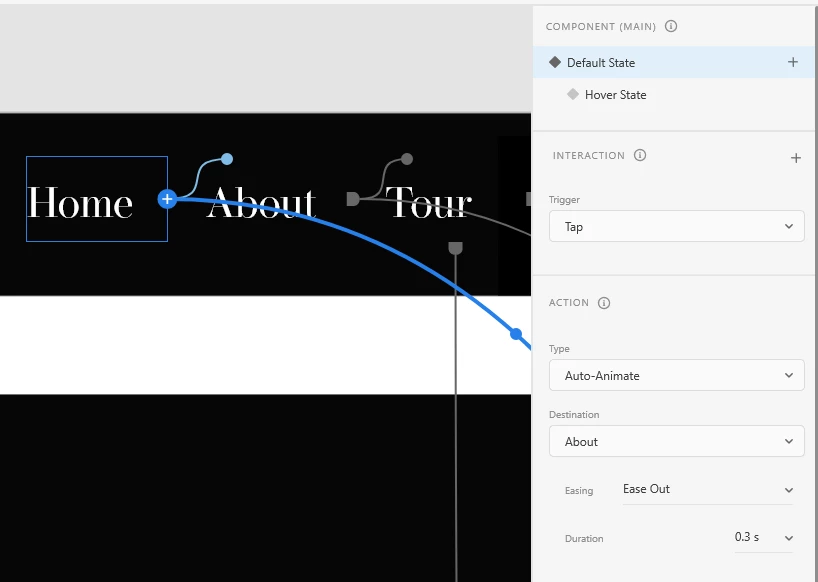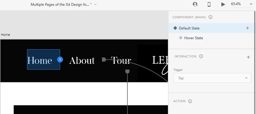 - Add a second interaction with "Tap" to the default state, that will point to a different page.