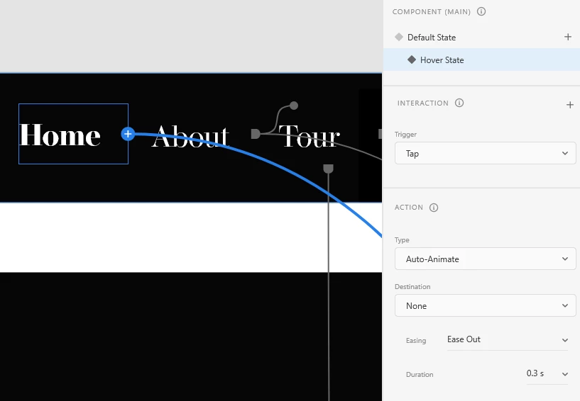 You can add it by either clicking on the blue arrow on the component, or on the + icon in the Interaction tab on the right, and set the interaction to hover. The destination should be the hover state.