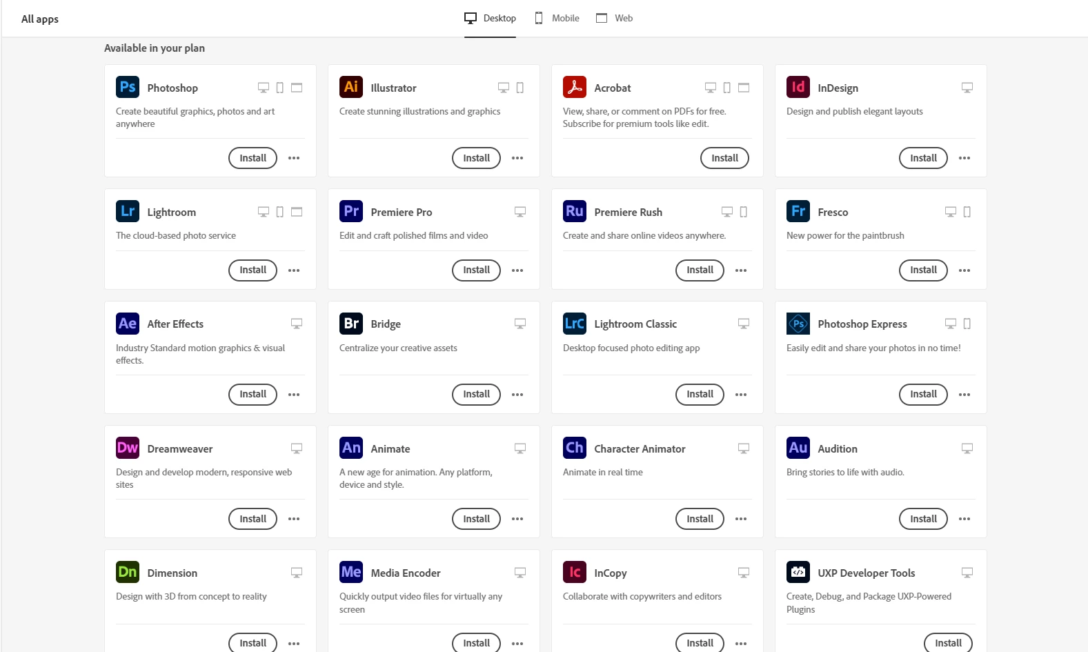 Xd Not showing on the Creative Cloud Desktop App but is included in my Plan