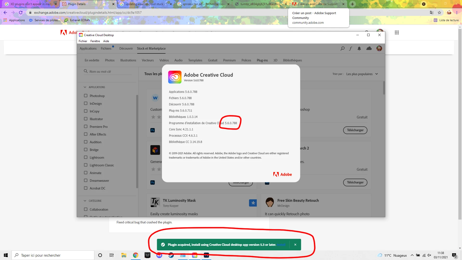 XD plugins don't appear in the CC Marketplace, neither in the already downloaded plugins page, even if they actually are. Therefore, I cannot install them. CC seem to be fully updated, desinstalling it and reinstalling it didn't helped.