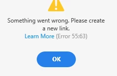 I am getting an error 55:63 & 44:63 while updating an exiting file link.