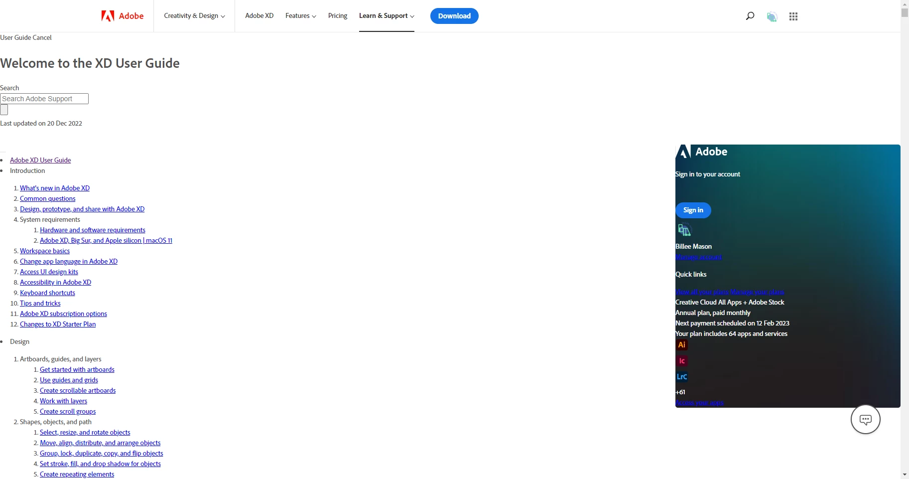 Hi, the adobe XD user guide is not working correctly. This is what I get. Please help solve this issue.