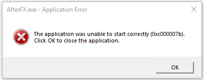 Hmm. Next step is to see if the Windows repair utility can find any issues; from Control Panel > Programs and Features, click each of the "Microsoft Visual C++...." entries in turn, and for each one that displays a "Change" option in the top toolbar, click it and select "Repair" in the popup window. The repair utility will verify if the files match the installation fingerprints. Note that the very old libraries (VC++ 2005 etc) don't have a Change option but After Effects isn't using those.