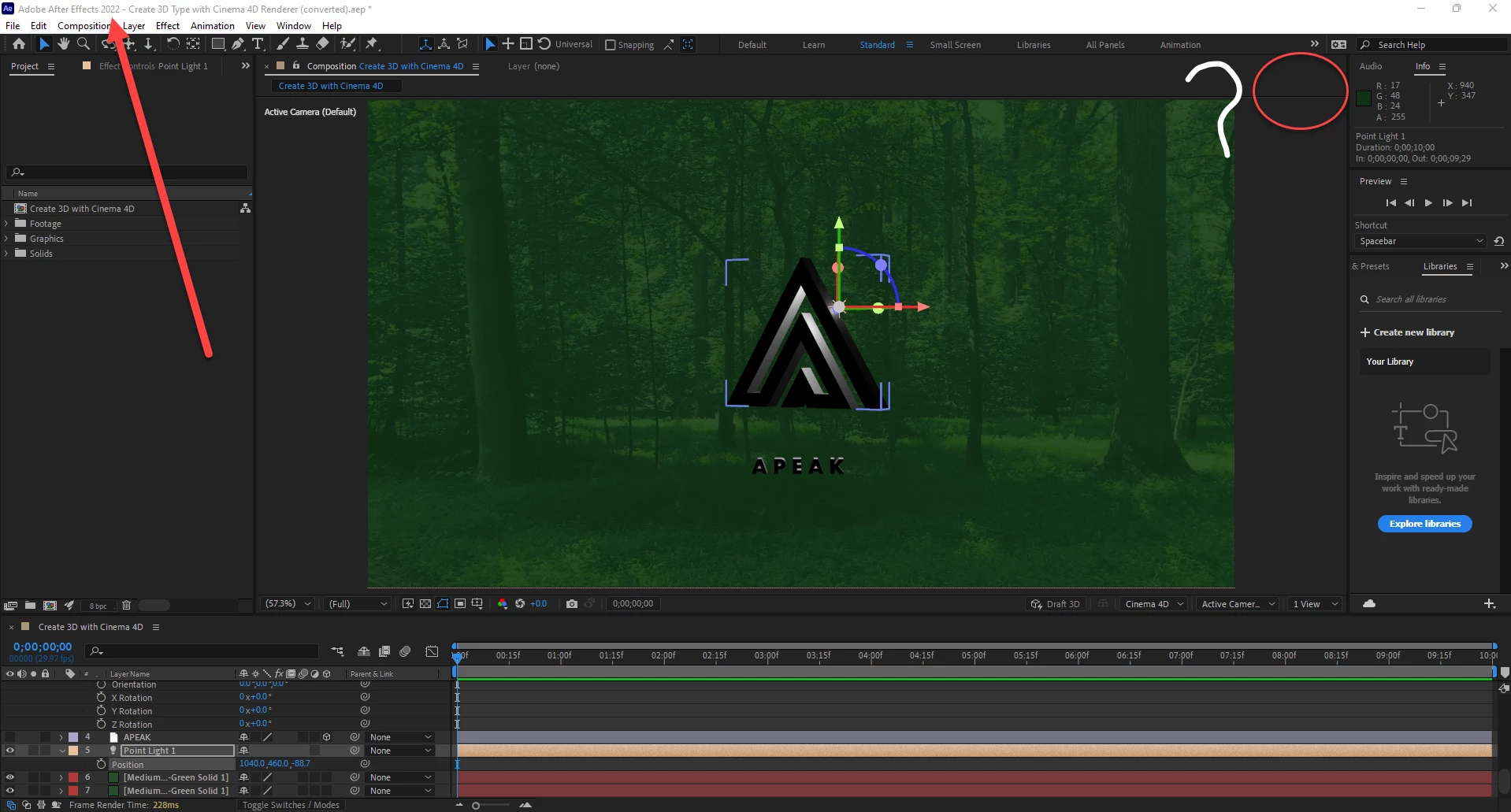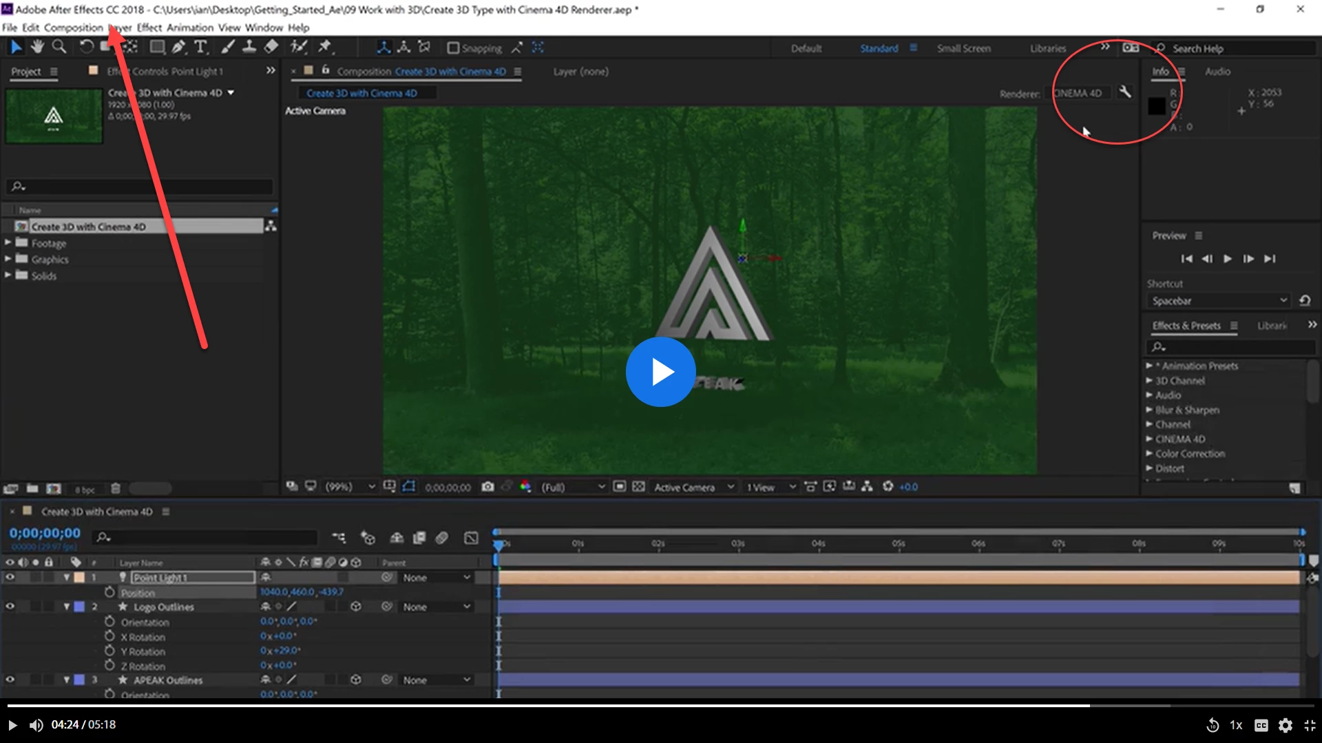 The UI has changed, the Rendering Engine indicator has moved, and the wrench is gone. The rendering options for the C4D renderer can be found in the Composition Settings or accessed directly by clicking on the Render options, which show up when you click the pull-down on the 3D rendering display in the bottom right of the Composition panel.