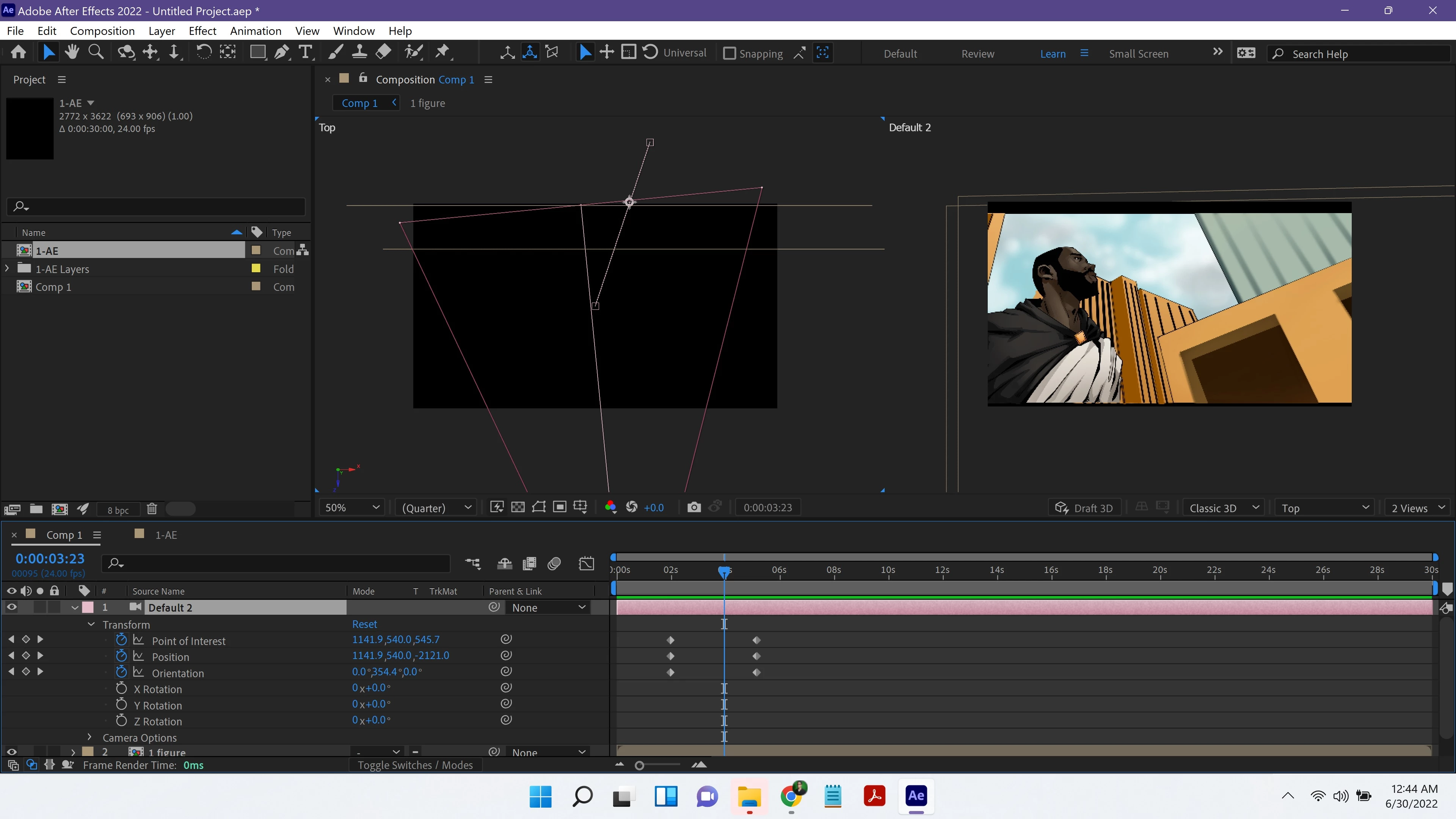 Trying to do a simple 3D animation with static foreground and background images, but the layers (which are all 3D active) don't seem to be registering. The camera layer seems to be moving properly, but when scrubbed through, the other layers seem as if they're not 3D activated at all.
