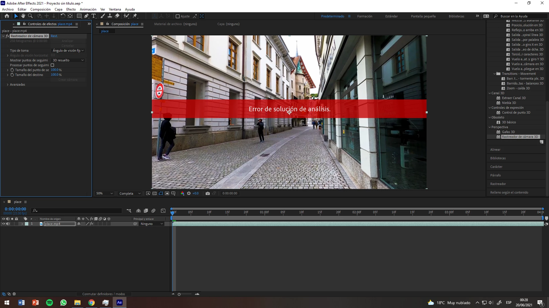 When I give a 3d camera tracker to a video, it finishes loading and I get parsing solution error.