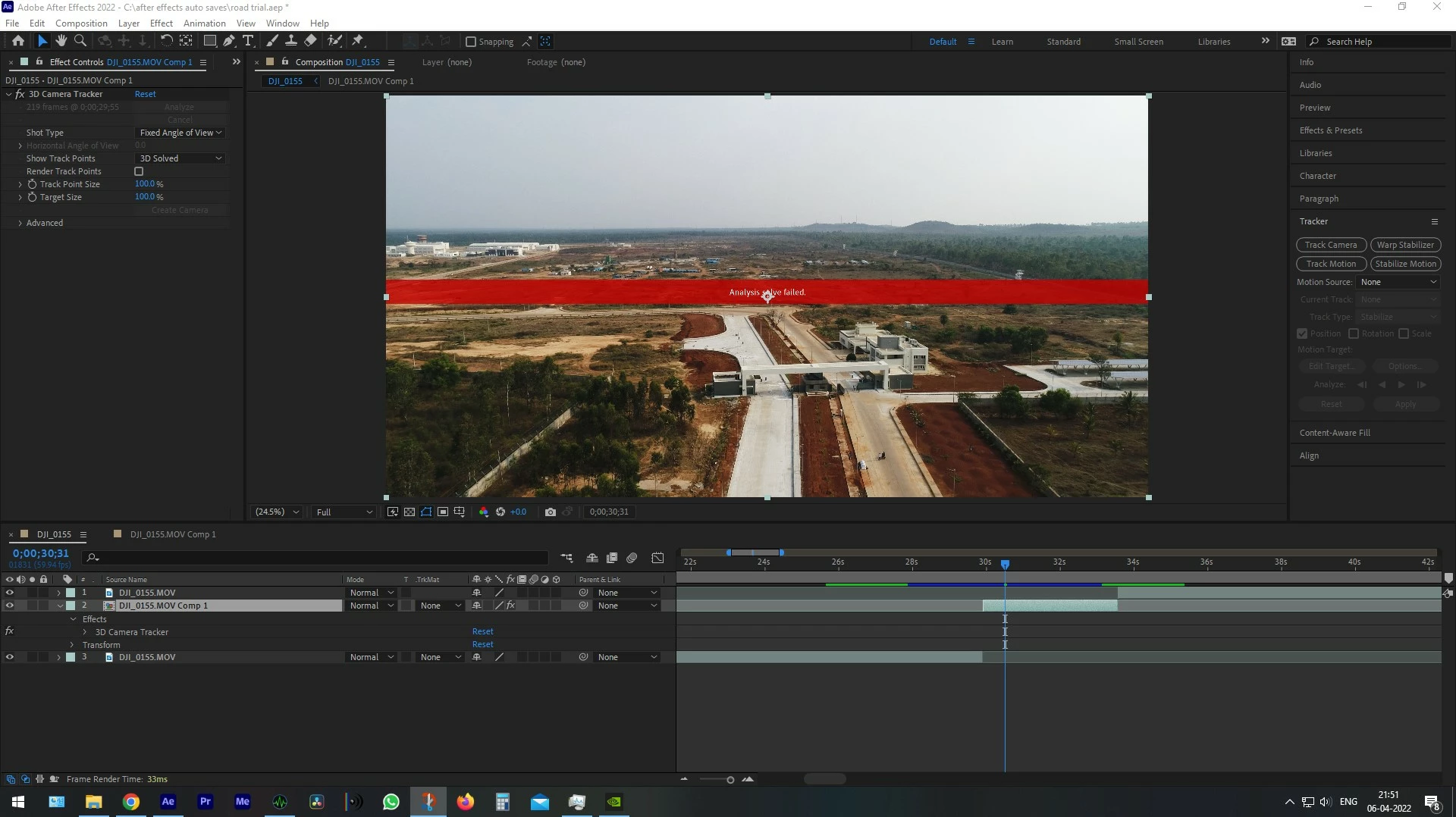 I have been using AE for a long time now and I'm pretty much aware of how the tracker works, but this time I upgraded my PC from Ryzen 5 to i9 19200k (not sure if that's got to do anything with this issue). post upgrading and installing AE. I've not been able to track a single clip properly, for every clip, the tracker runs analysis and post-analysis which gives me an error "Analysis solve failed". Before running the tracker, I've tried re-installing AE, re-installing windows, precomposing, and using curves to gain more contrast. tested different clips, I also have problems running tracker on previously tracked footage which worked on my previous pc and same footage tracking analysis fails when trying on this machine. this is totally hampering my work :(. can anyone please help?