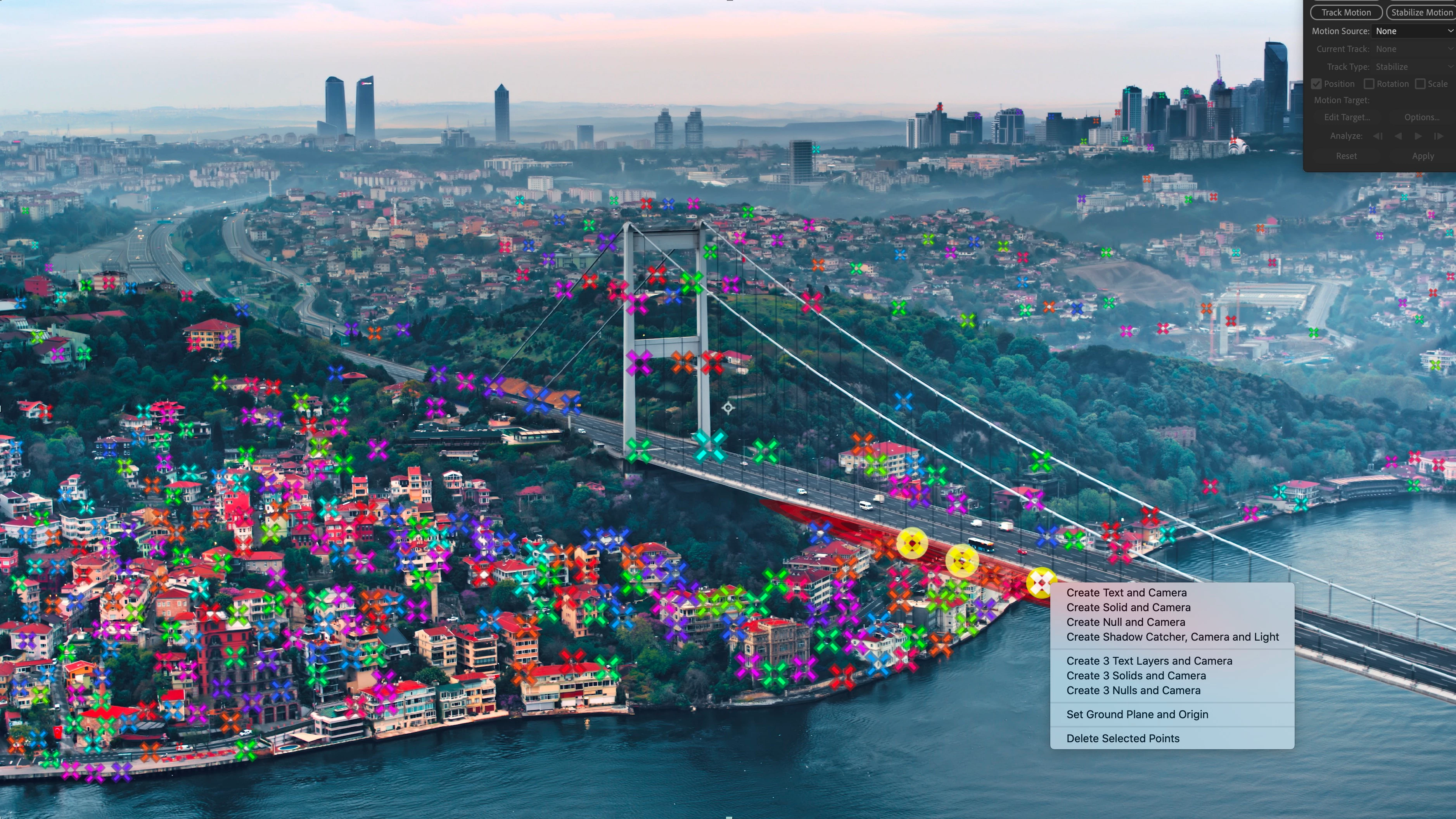 I'm sharing the project and here's a time-lapse video of the workflow. I could have probably sped up the process if I had access to a higher resolution master and done some color correction and masking to get a better track on the bridge deck.