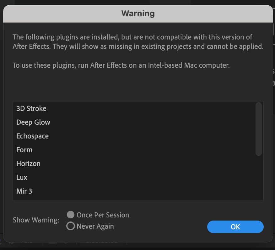 I've been having crashes since updating from AE 2023. It keeps showing as missing for a bunch of plugins that I previously had installed. I'm including an Image below. I looked up in the Adobe Forums and tried removing any 3rd party plugins, but when i try it shows as I don't have any. I'm not fully sure what else to do but it keeps asking me if I'd like to open in safe mode but everytime I do , I seem to not be able to figure out the culprit. does anyone know what I can do?