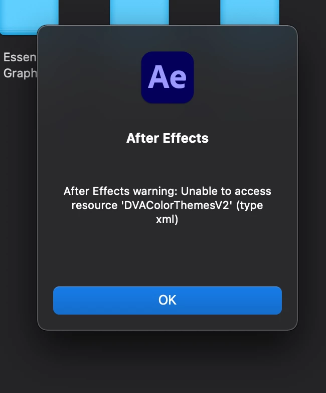 When I tried to open "After effetct". It didn't open or load or anything. I't was like I didn't even click the button. But, now The software try to load but it gives me 2 messages. First one about color theme. And when I press ok it gives me another message of failur. I will attach 2 screen shots of the messages. Please tell me if you need more information.