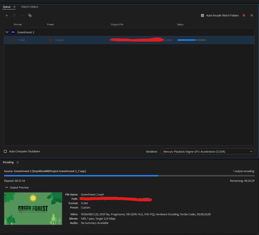 TTrooperMNParticipantForum|Forum|9 months agoJune 21, 2025AnsweredAdobe After Effects Render time takes too longForum|Forum|9 months agoJune 21, 20251 reply396 viewsso, I made a 20 seconds video, 1920x1080 I don't use any heavy effects, it is one of the "heaviest" effect and that's it. in the beginning, media encoder wrote 1-2 minutes as estimated time for render, but it's taking like 1 hour or more.. I built this PC for HEAVY Adobe use, PLEASE help How toImport and exportPerformanceDynamic link