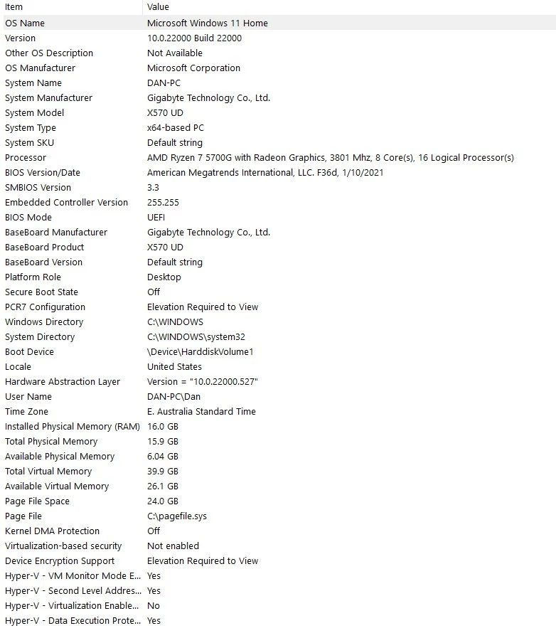I am using a custom built PC running Windows 11 64bit Home build 22000.593 - Here is the system information: