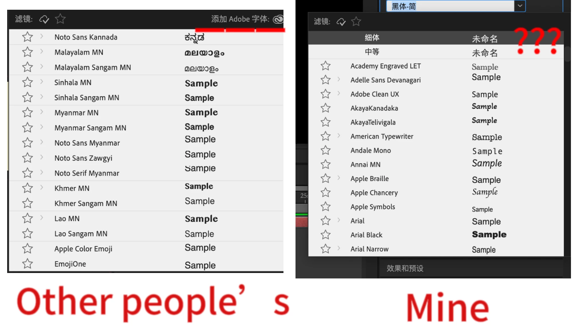 Usually, there should be a button that could link to Adobe Font directly in After Effects, and a switch named 'font settings' in Creative Cloud. However, I don't have both so the fonts cannot be used. Has anyone met this problem before? Could someone help me to fix it? Really appreciate it.