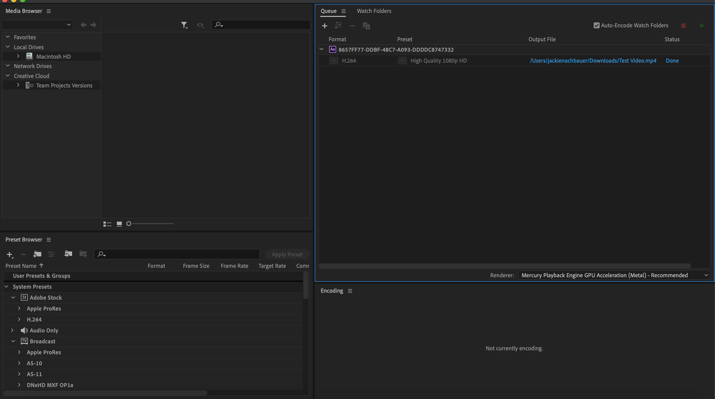 Adobe Media Encoder exporting colored bars