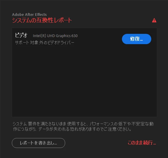 Sorry for the issue. Do you experience any problems while using After Effects after you continue? I'm assuming that your laptop must also have a dedicated graphics card. Please check if there are any updates available for your dedicated GPU. Please also let us know which version of After Effects you're currently using.