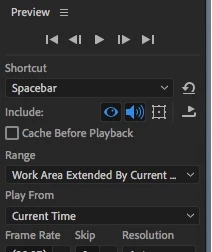 I'm doing a simple 16-second motion graphics piece and I'm pressing the space bar to preview. When it gets to the end of my work area, it moves the playback head back to the beginning and continues playing. I have the loop button set to play once in the preview pane. This button doesn't seem to be doing anything at all.
