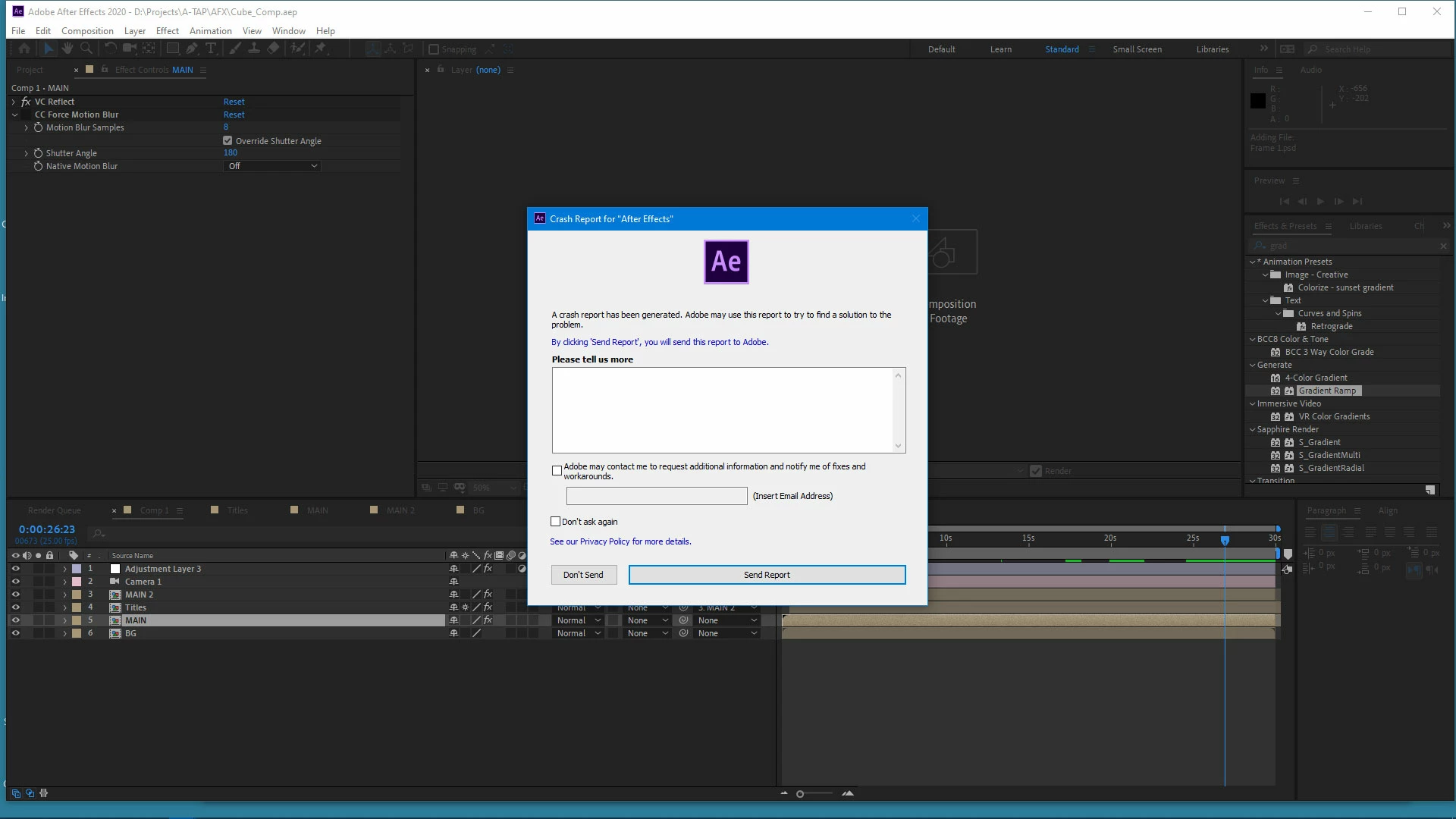 ae crashed every time i import PSD File !