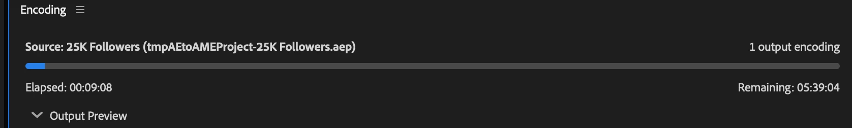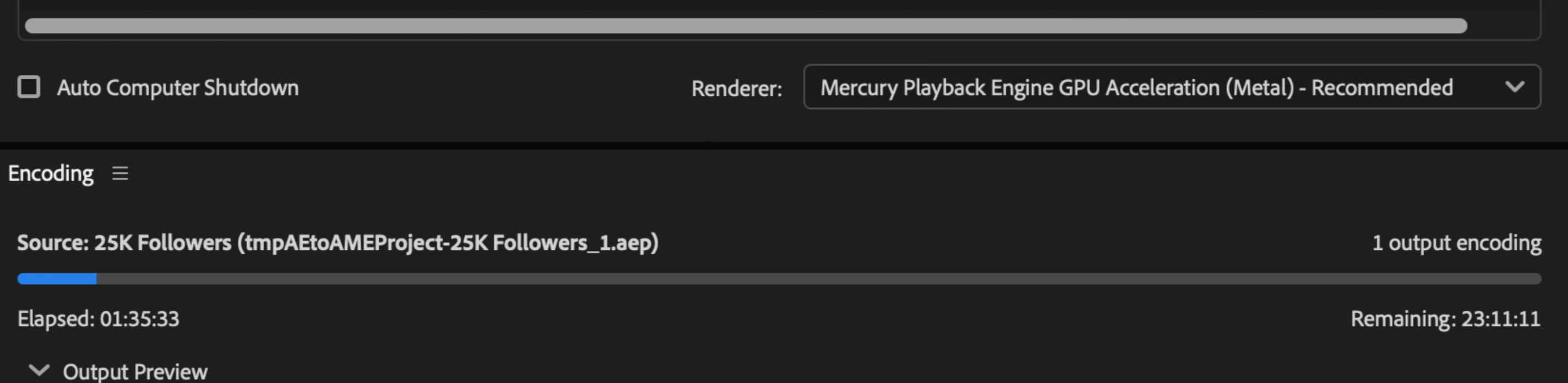 Excuse me for posting this again, but the problem is beyond frustration. This particular project is a simple 30 second comp with 4 layers 3 text + 1 image layer, with just 1 fx (CC Light burst) and 3 keyframes on it. I clicked add to media encoder queue, and here's the time it estimates to render. Already 10 minutes elapsed. I also notice that the elapsed counter seems to freeze in between.