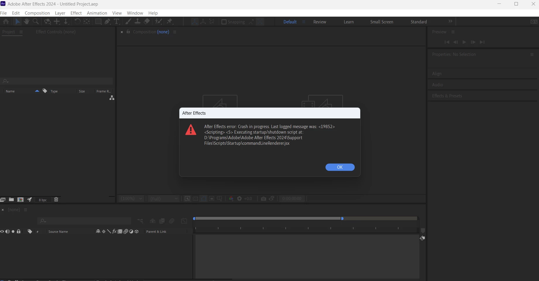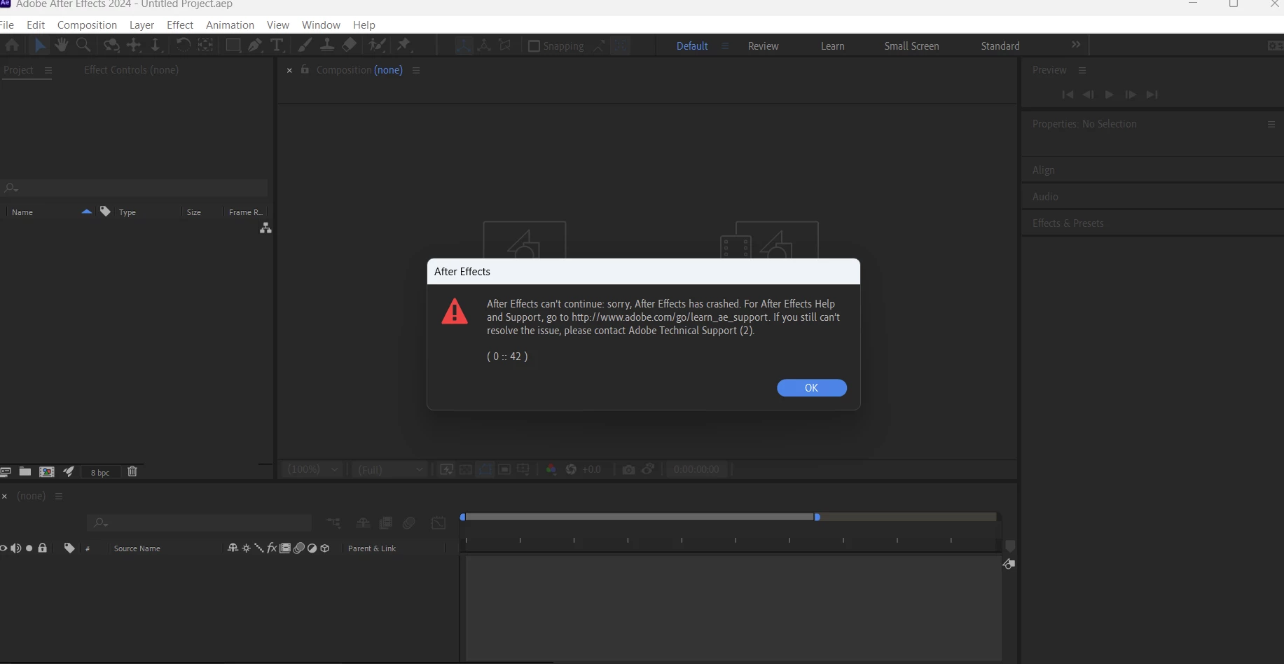 Ae Crashing immediately after opening