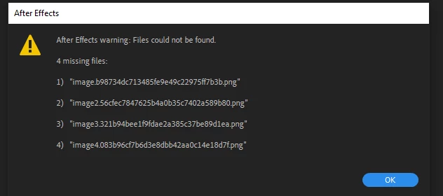 As the title describes, I have an issue of missing files when exporting adobe XD to After Effects using the handy "Export > After Effects" . Every time when there's something missing it has to do with a png file (I assume jpg and svg as well).
