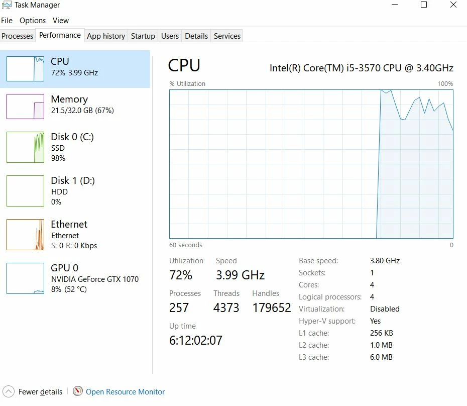 When I look at the performance, CPU is mostly getting used and GPU is at 2%