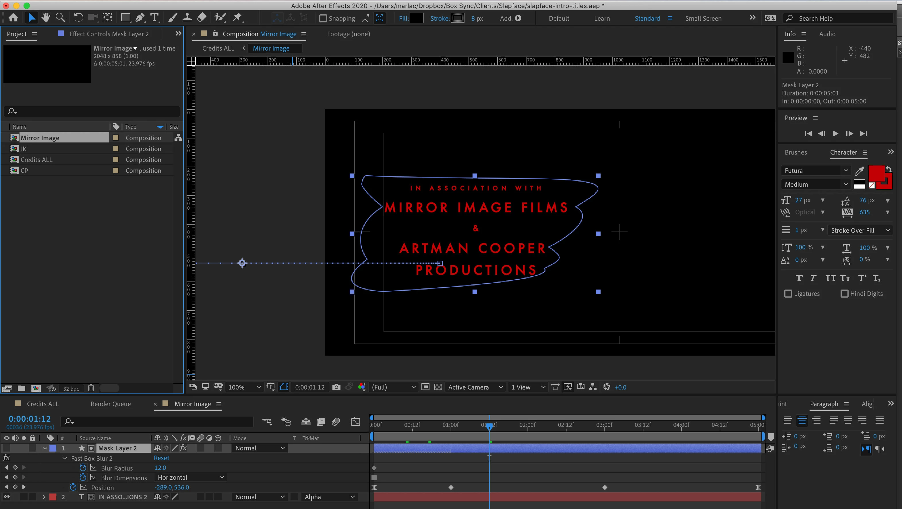 I've created titles in After Effects. They are text made in after effects. The titles don't move but a mask layer moves on top of them. I'm adding all screenshots of my comp and also of AME settings. Post house asked for QT Adobe ProRes 4444 with alpha channel. My comp is set up as just typed text with the mask layer that moves onto the text (so it's visible) then leaves it. No idea why my text is crunchy. I saw in another post where problems can arise when not lined up to grid which I didn't know. Do I need to have my text lined up on the grid? Included screen of that too.