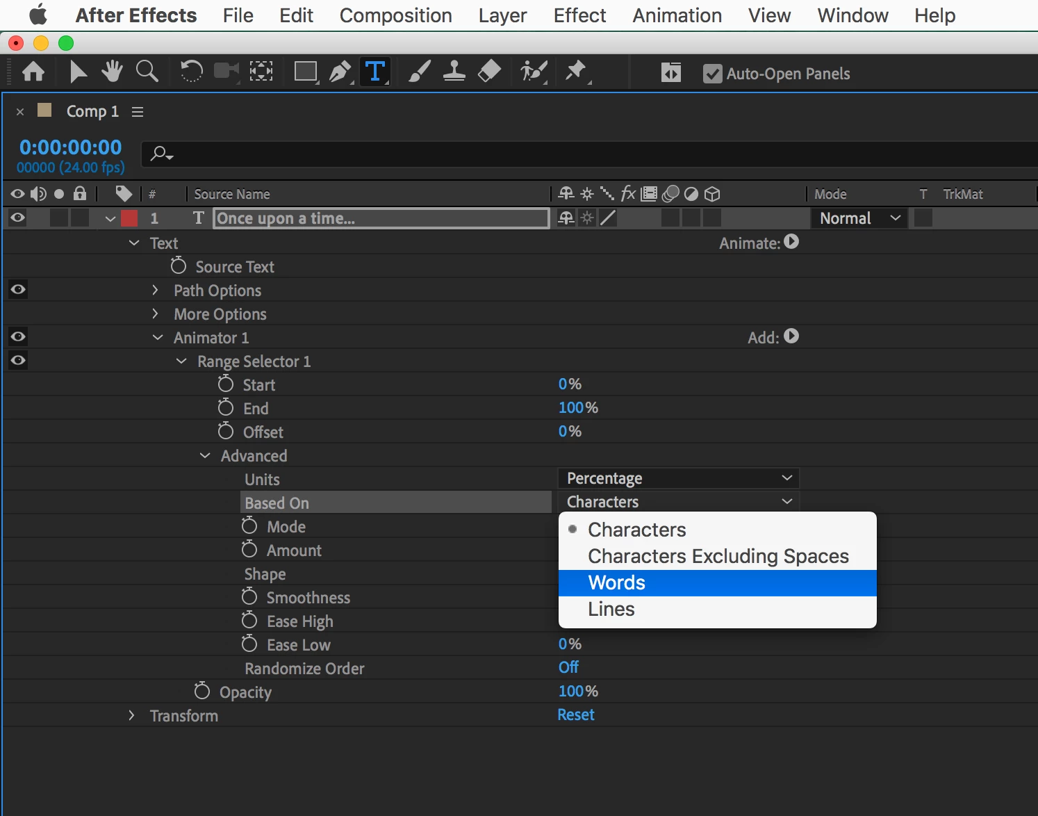 AE text type fade animation