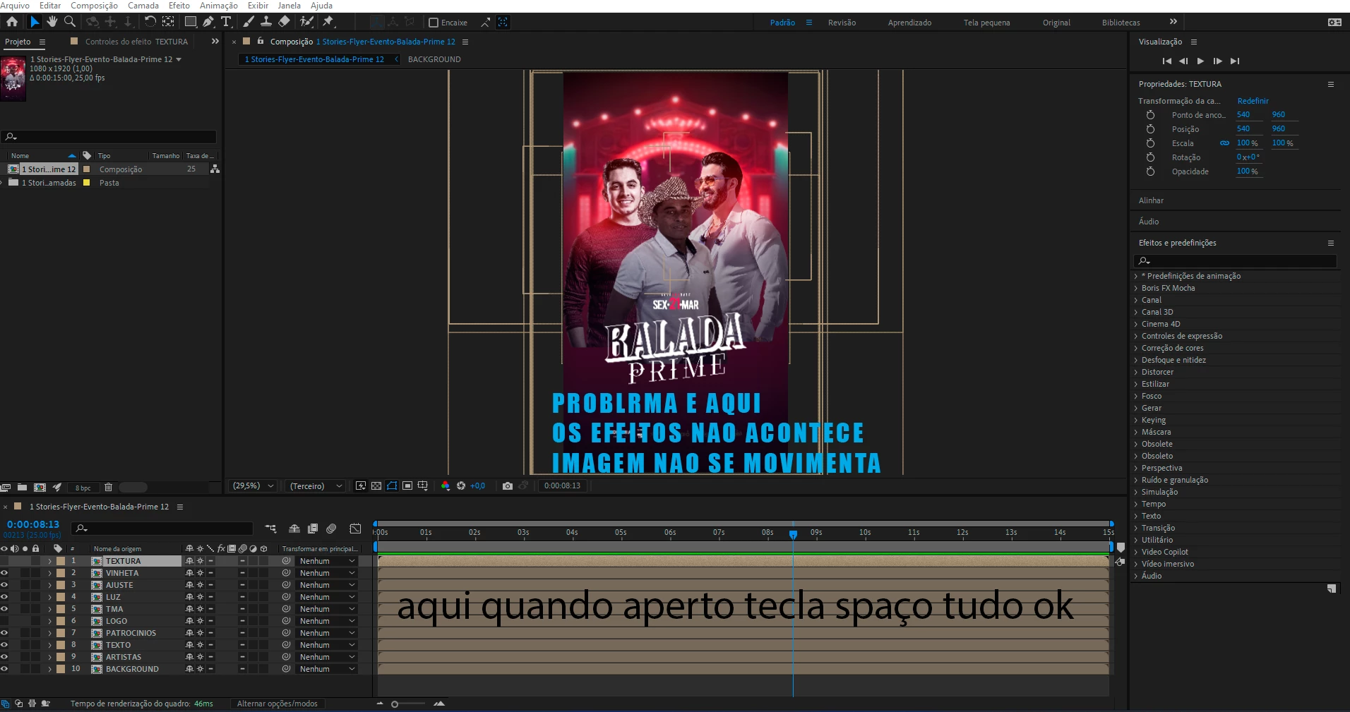 - nunca tive problema, mas essa o erro persistem, o material nao se movimenta na Time line do Afeter, ja fiz ums configruaçoes e nada, alguem tem uma dica de como voltar a funcionar esse programa