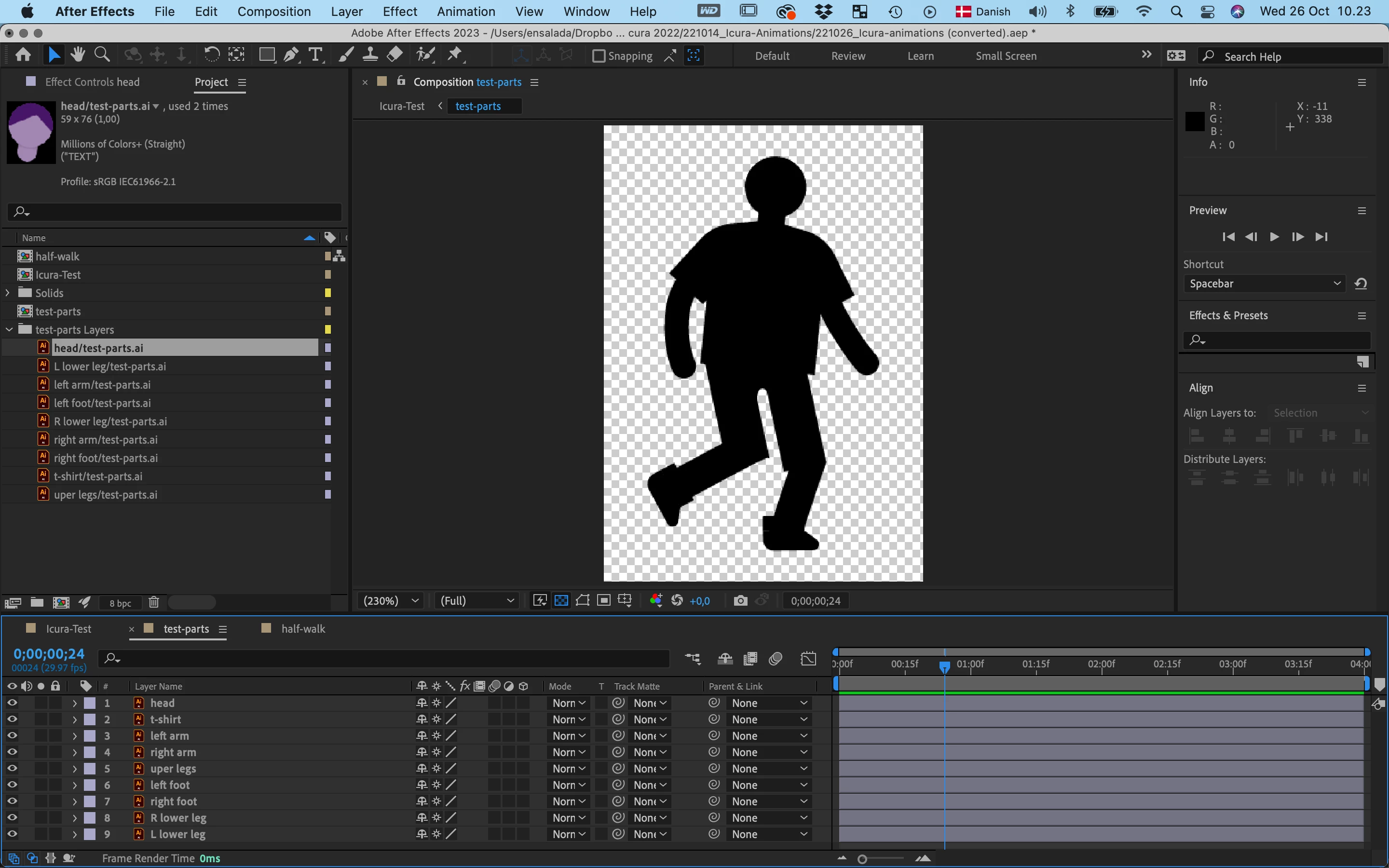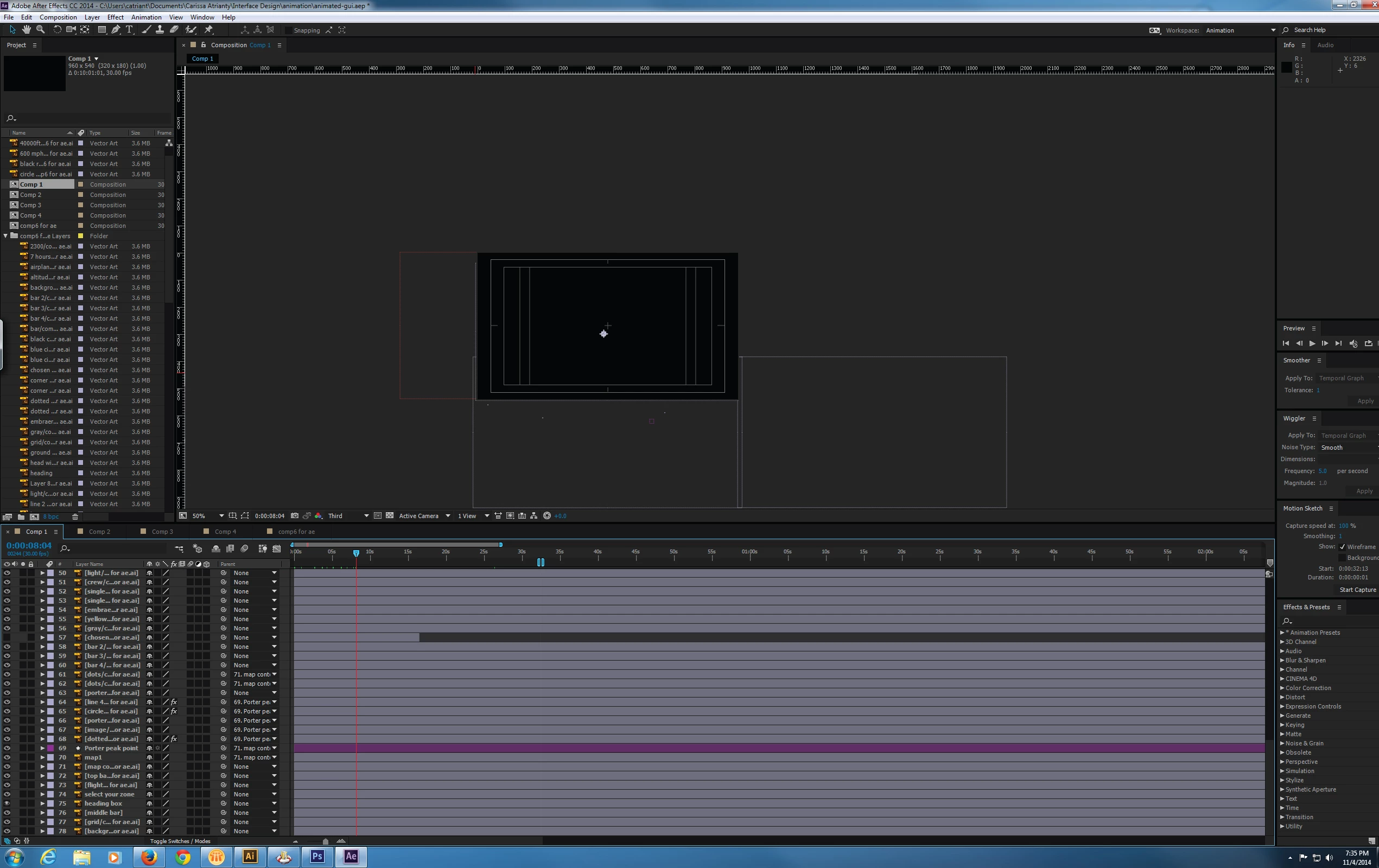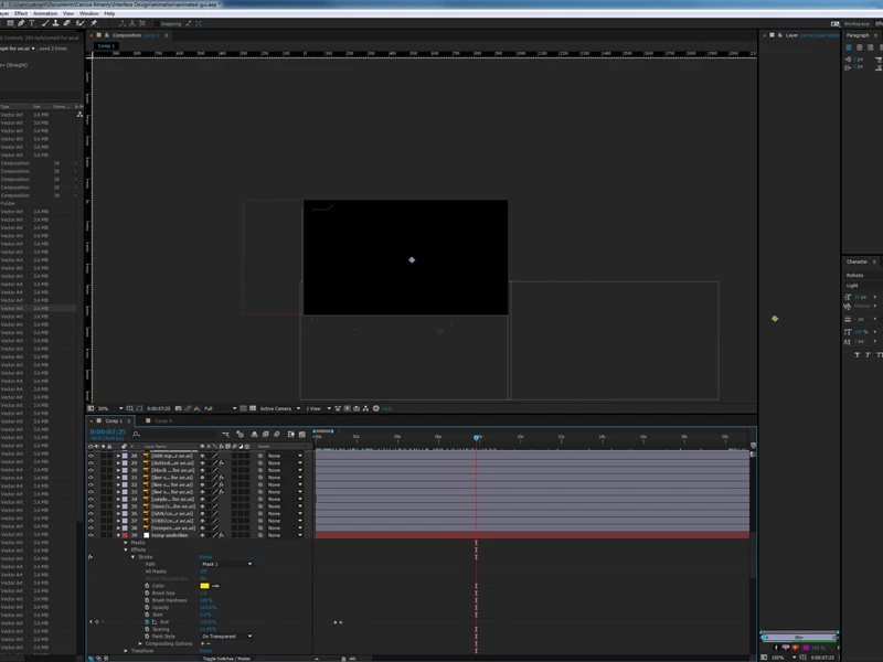 One more thing. This is what the comp looks like when I highlight all the layers. All the keyframes and animation are there but the layers are invisible, just some guides and bounding boxes.