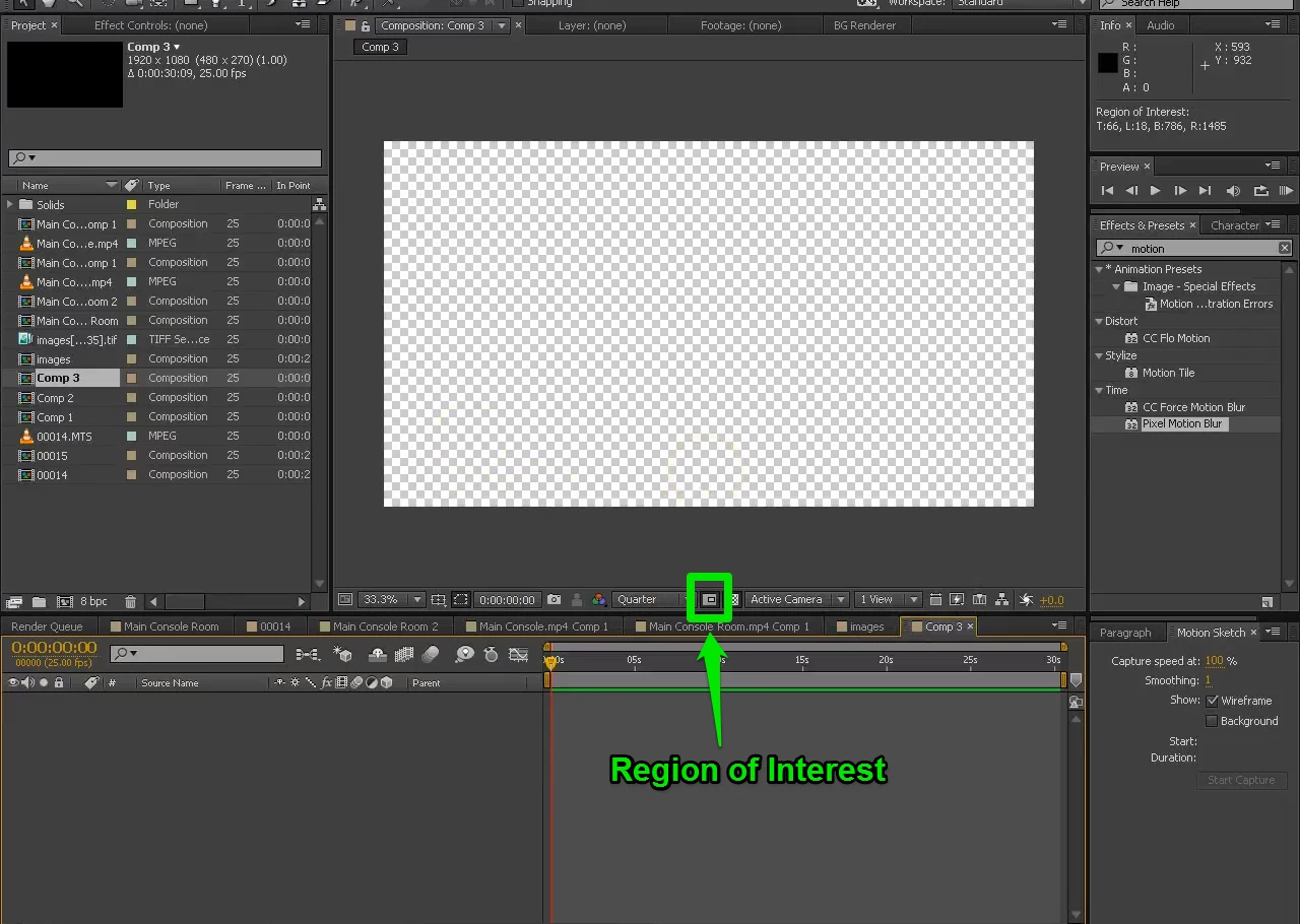 see how in the above picture the movie highlighted in blue has made the rest of everything disappear.  Ad tehn if I click on composition comp 1 it all comes back again.