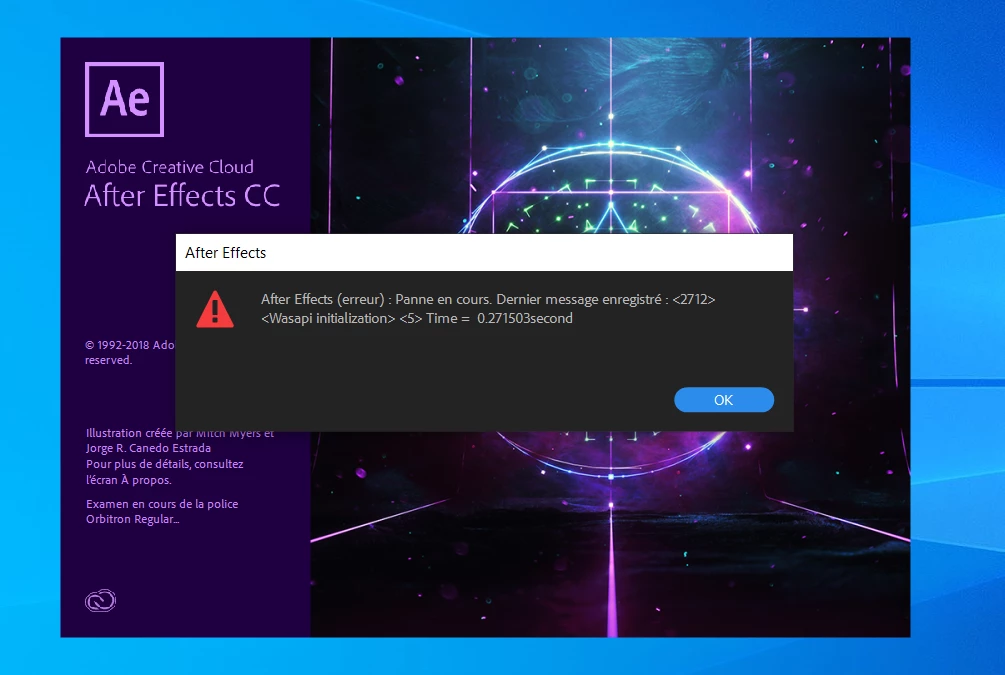 When I run after effect this message appaers ! I can't work since 1 week. I can't find any solution on the internet... I use after effect 15.1.2 and for the moment I can't change the version (I'm french)