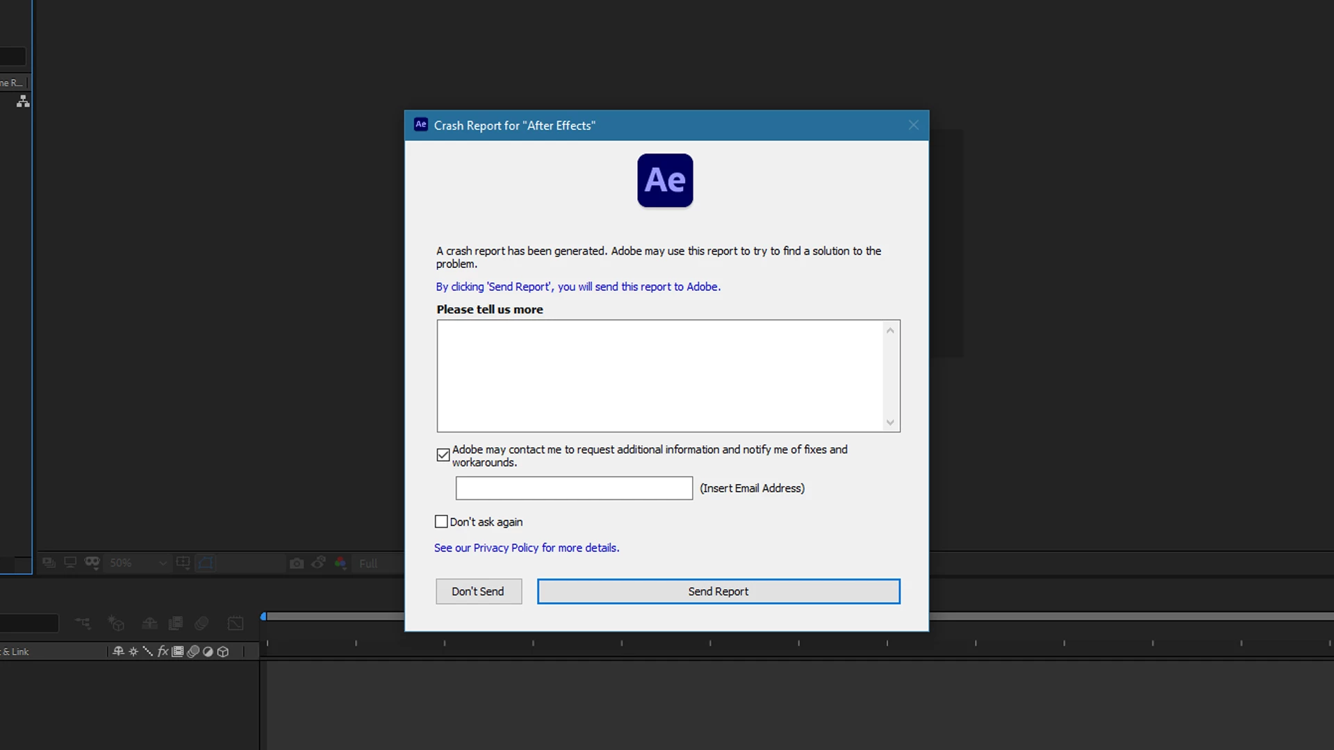 Hi, I wrote about After Effect problem. Yesterday I updated After Effect and problem get even worst. Earlier, when I tried import mp4 file, it showed an error, but now the program crash, and I can"t do anything. This version is so troublesome.