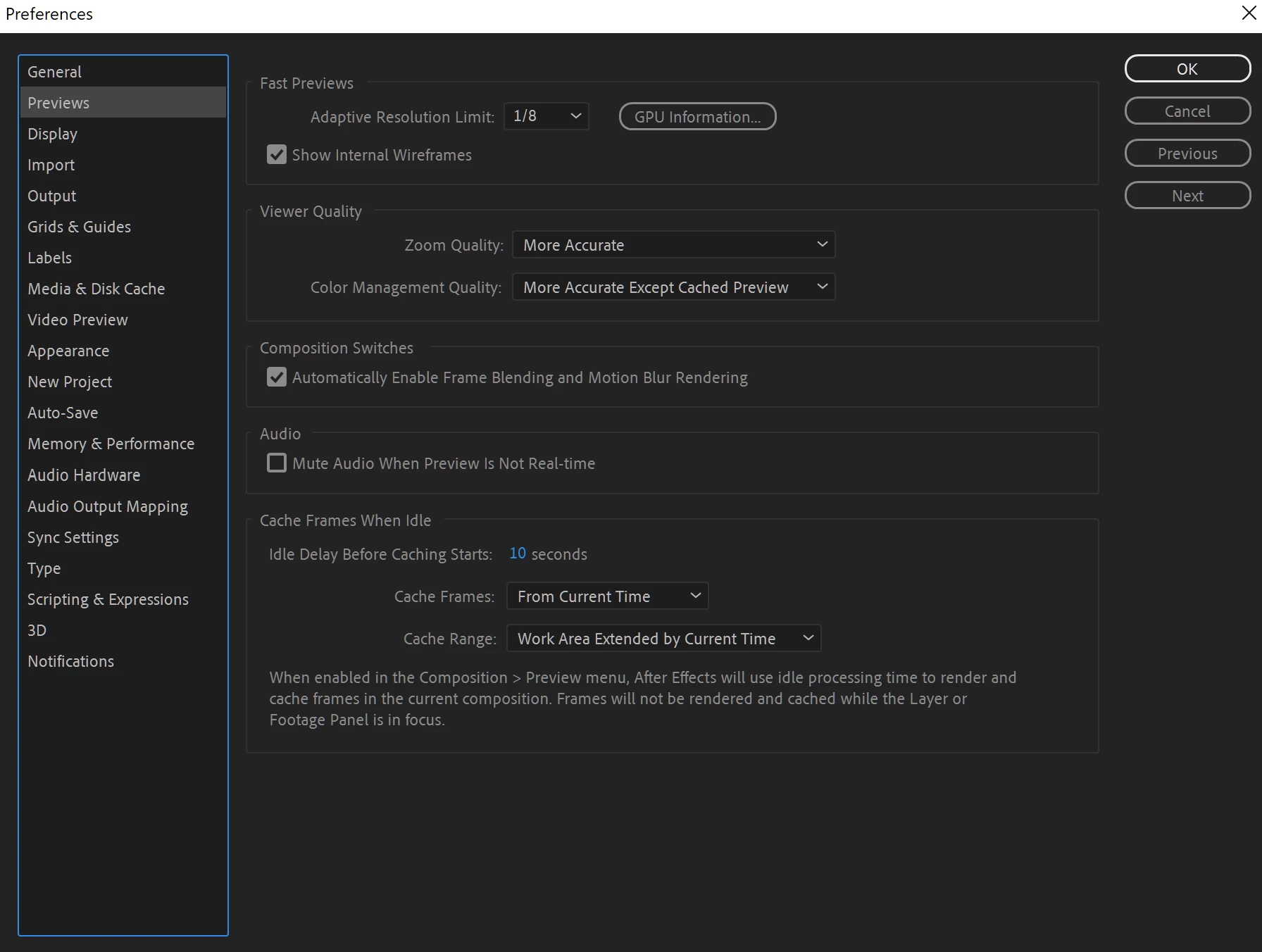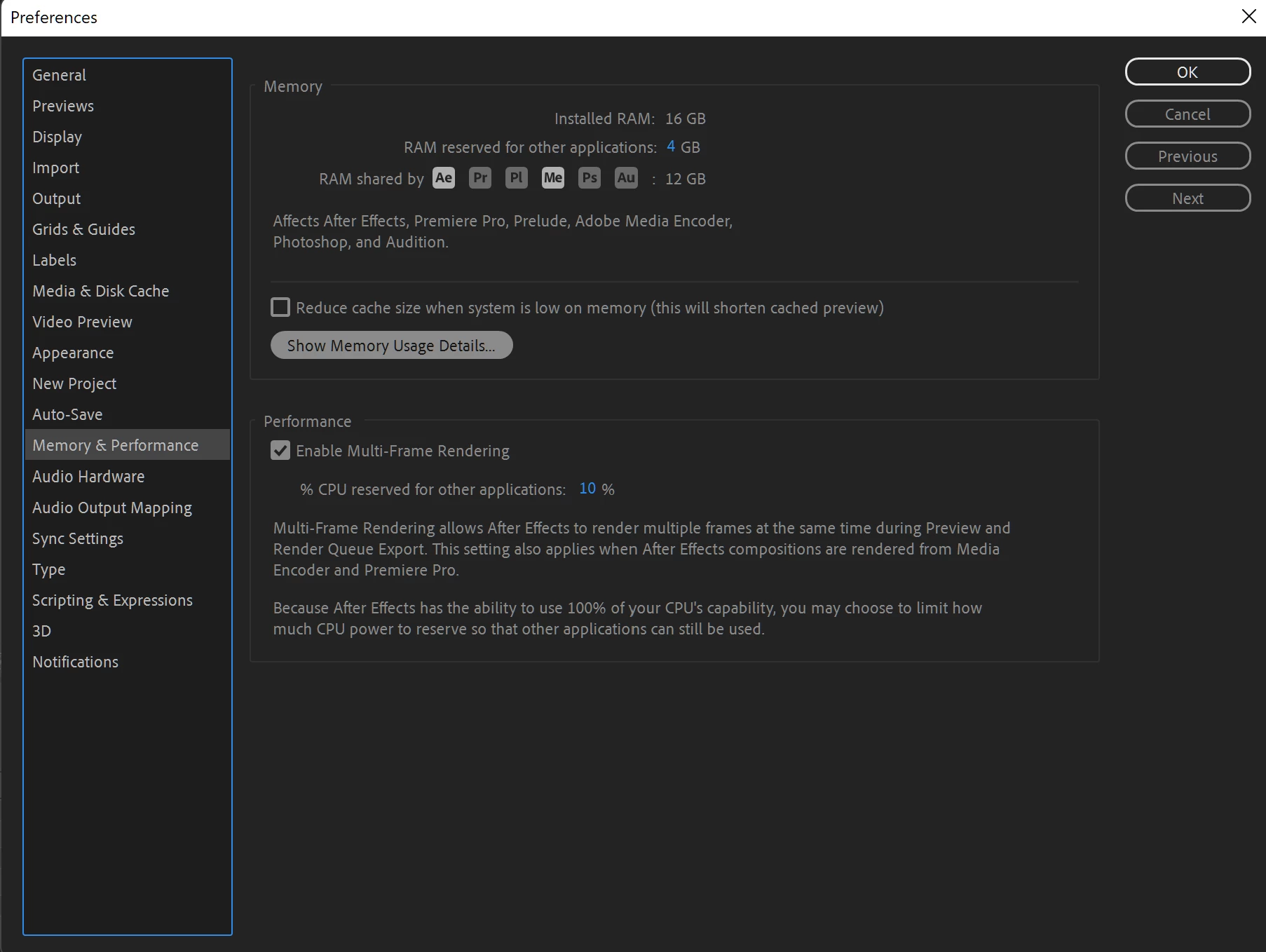 In short: sometimes preview only play very few frames and keep repeating them, no matter how much I change my settings. I have put a few images here of my AE settings, which was working normally the past days and now it's with the same problem that I had fixed.