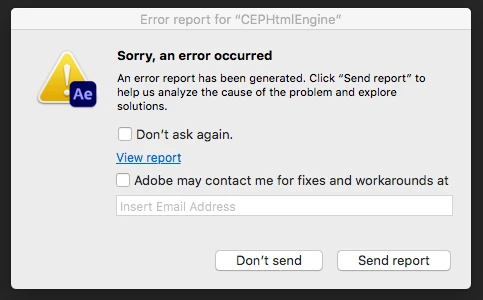 Up until recently, whenever I try to use/open an extensions window, I either get an 'CEP HTML Engine' window crash error, or the extension's window disappears, and is then completely blank.