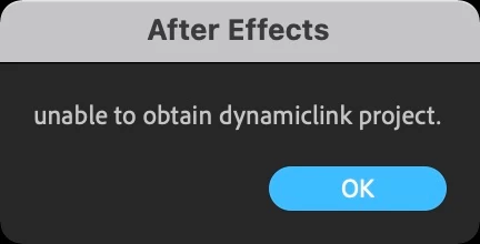 After Effects 2020 unable to obtain dynamiclink project