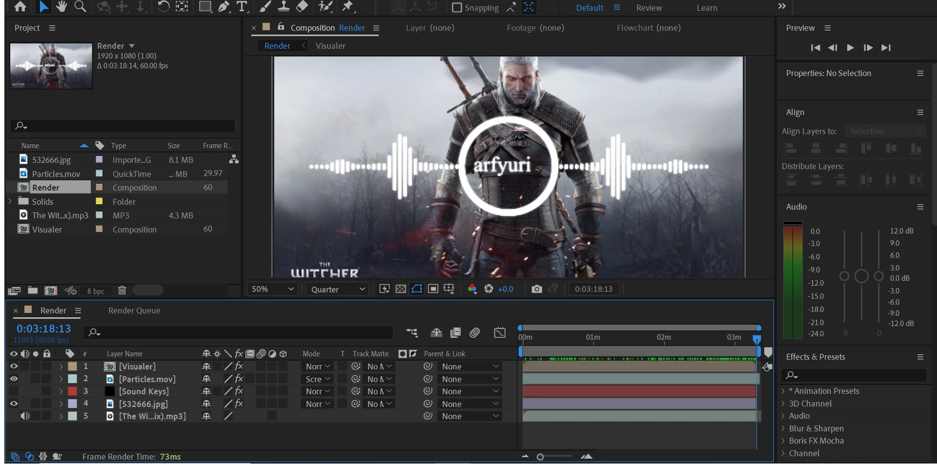 The timeline for this template is 3:18:14 and any mp3 songs I add to this template, the background image effect stops beating to the song. I am trying to locate the area that I can change so the background image of The Witcher will continue to move along with the song that is over 3:18:14.