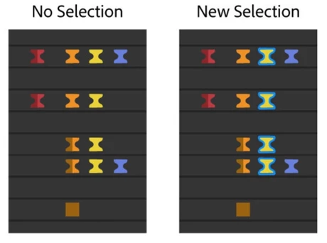One of the top-voted feature requests —colored keyframes— has been added to After Effects 22.6. Keyframe color labels allow you to assign colors to keyframes in the composition. Coloring your keyframes helps you to organize, identify, and quickly locate critical components of your composition. You can also use the color labels to quickly select keyframes with the same color group. Label colors can be seen even when the keyframes are selected. When the keyframes are selected, they have a blue outline to differentiate them from your assigned color labels.