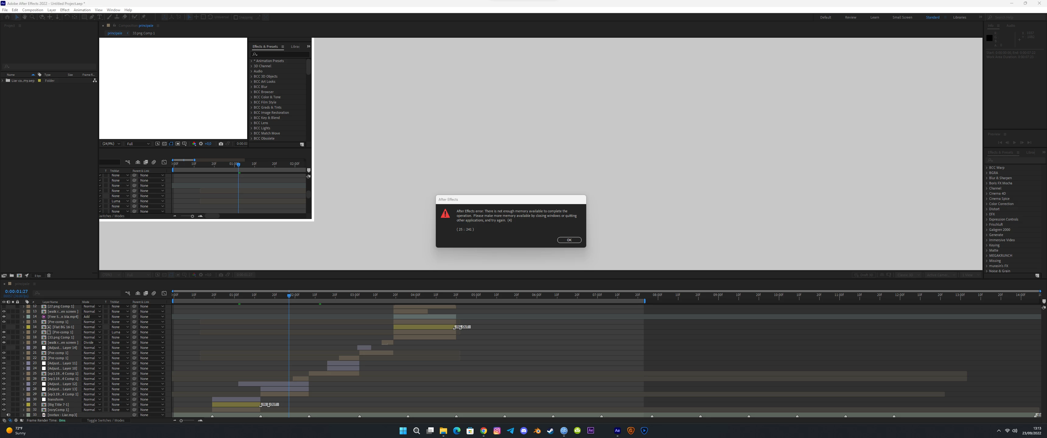 I am using 22.6.0 (build 64) on an M1 Pro. Every update makes the performance worse, even up to the point my 2012 iMac is rendering faster than my current setup. I get memory errors so quickly. Even if it is simple comp, after a while everything slows down and then I can't preview anything. Lots of people writing things to try but I wanted to know if this is a recognized problem or not. Thanks.