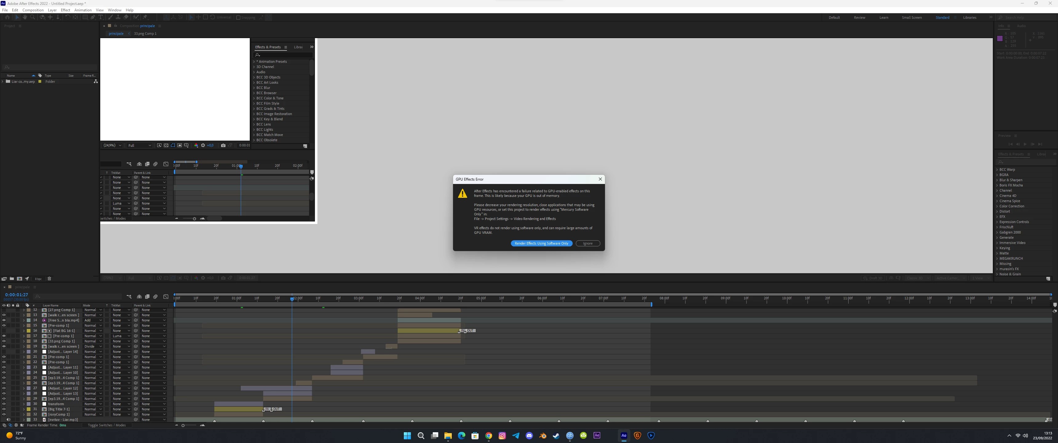 • Fixed an issue where zero denominator errors would occur on project open. For example:- After effects error: zero denominator converting ratio denominators (17::18).