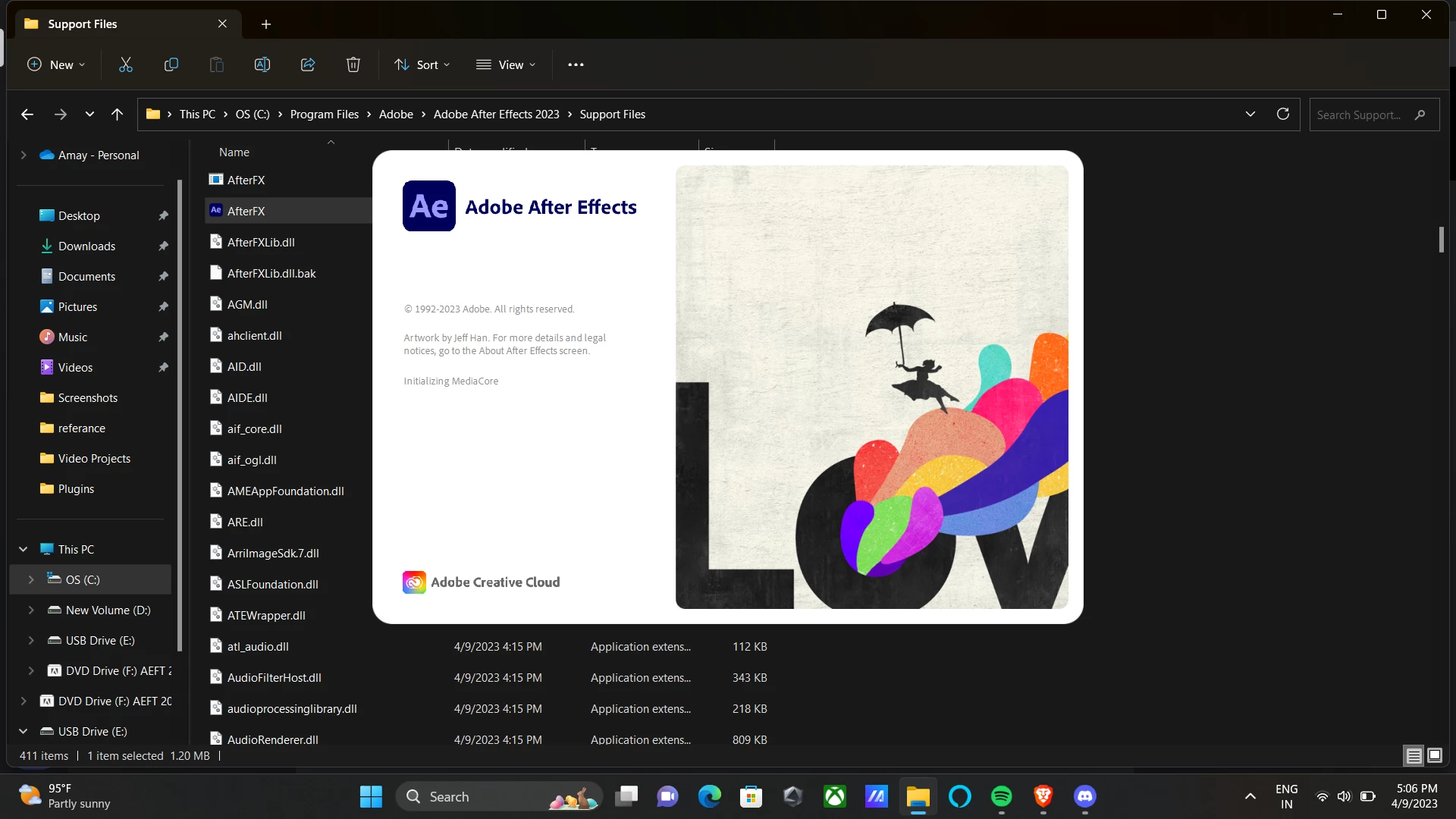 After effects 23.3 freezes on initializing media core startup screen then crashes