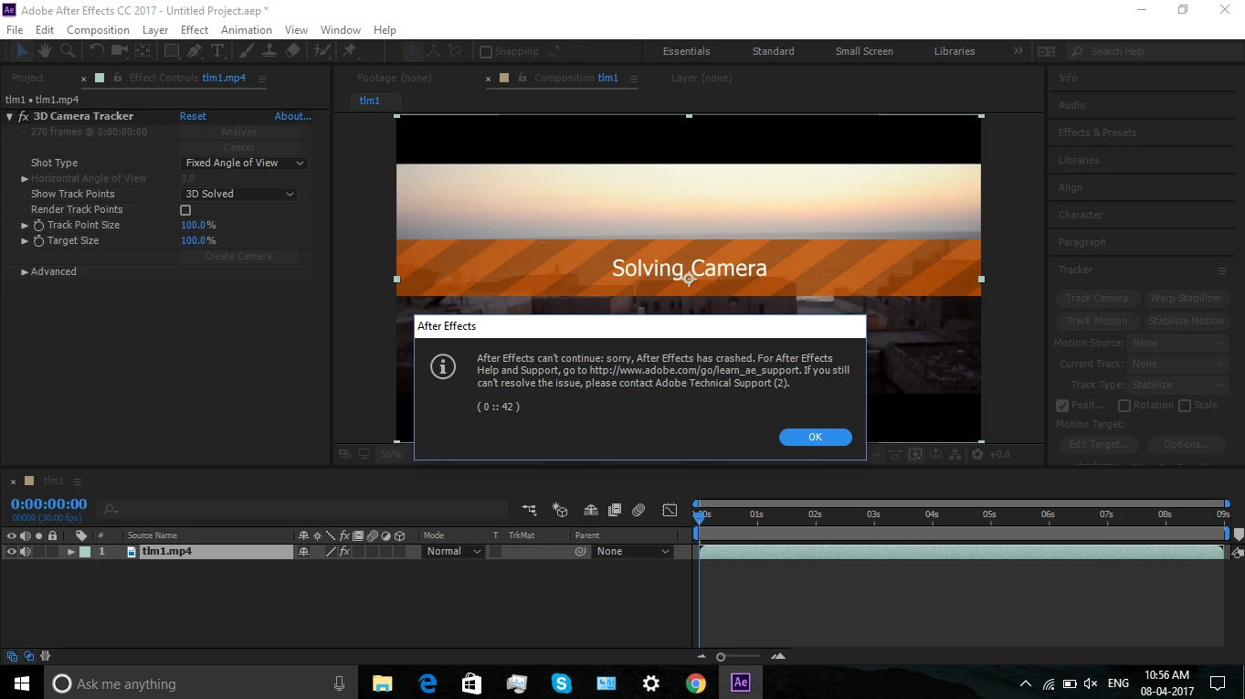 After effects crashes in solving camera