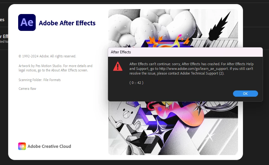 After Effects can't continue: sorry, After Effects has crashed. ( 0 :: 42 )