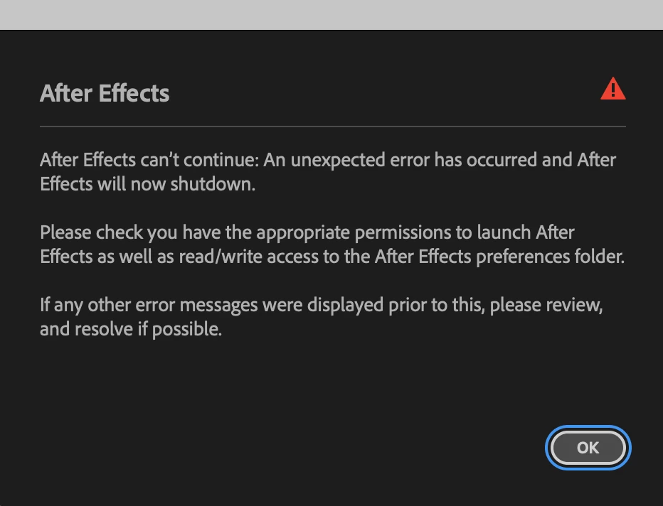 After Effects Can't Continue: Unexpected Error (MacOS)