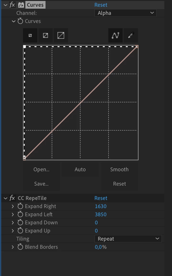 Apply Curves effect above the Repe Tile effects and set the Alpha chanel